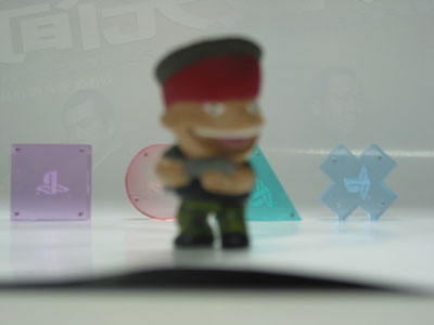 如圖就是一個很好得很例子。上圖的對焦點是CS小人后面的背景,所以背景畫面看起來相當的清晰,CS小人就變得十分模糊。下圖對焦點在CS小人的身上,就是一張成功的照片了。