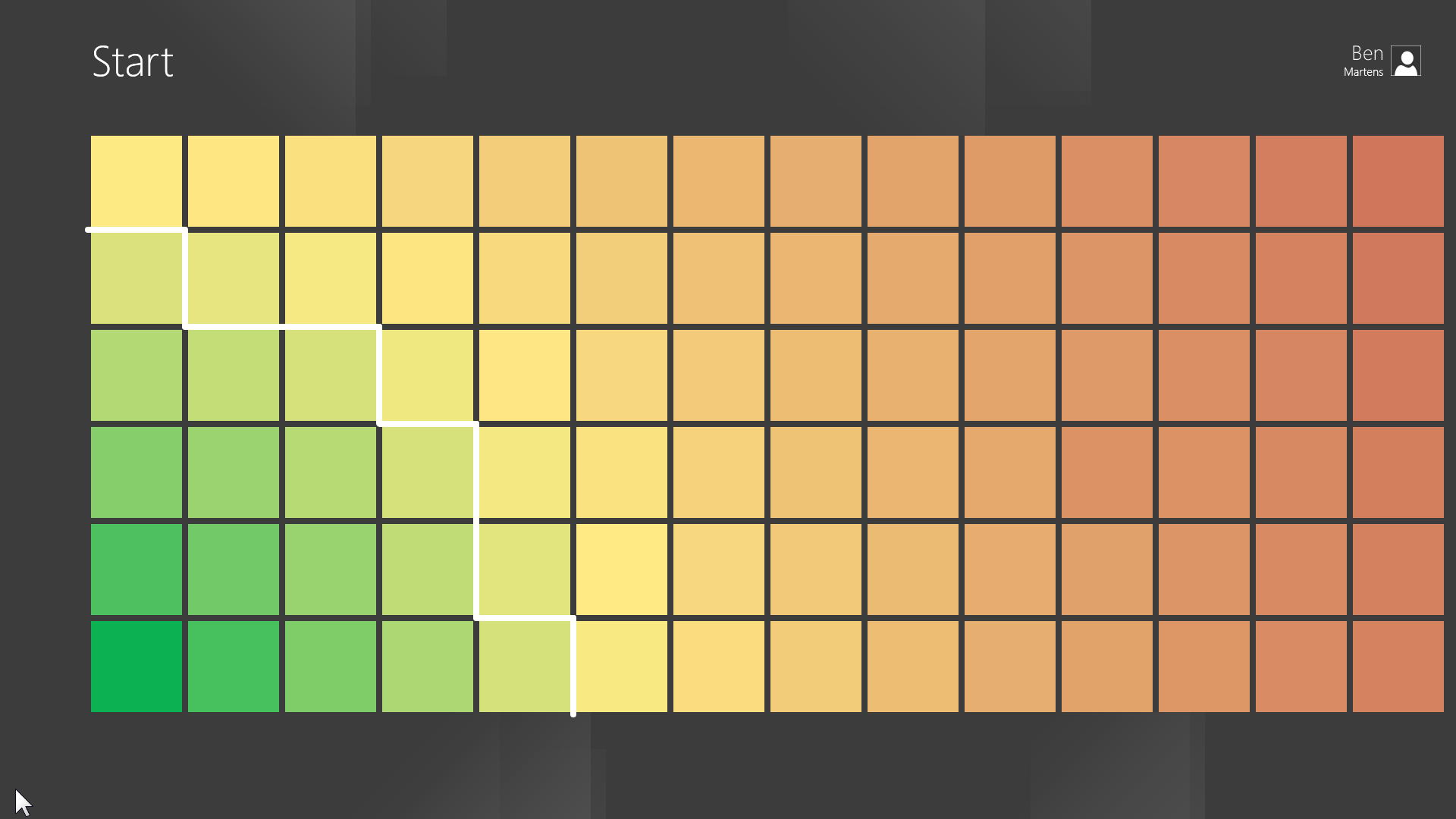 另外,相比開始菜單,Windows 8的開始屏幕能讓用戶更快地訪問更多的應用程序。如果鼠標從開始按鈕活動,那么到達開始菜單中的條目所用的時間分布如下(綠色條目是最快可到達的,紅色代表最慢到達的):