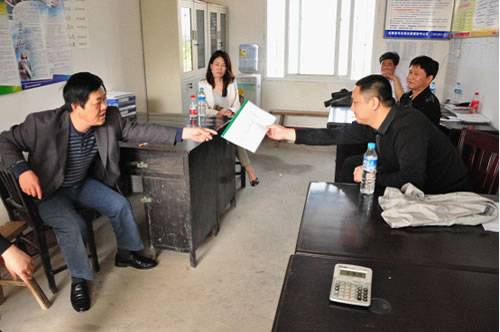 圖片資料:2011年4月初,總經(jīng)理李海波親自考察夏集村