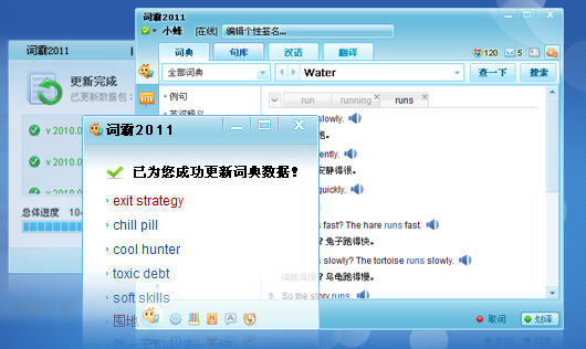 金山詞霸2011正式版正式推出金山詞霸2011版增加了海量詞典,宣稱提高了翻譯水平,更添加了IM功能。據介紹,2011版IM不僅具備用戶一對一的聊天功能,還集中創建群組、文件傳輸、截圖、發送短信等一系列實用功能于一體。