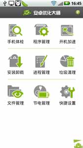 安卓優化大師是一款功能強大的Android手機系統增強優化軟件,它提供了全面有效且簡便安全的手機體檢、程序管理、開機加速、安裝卸載、進程管理、垃圾清理、 文件管理、節電管理、快捷設置九大功能模塊及數個實用功能,共18個常用必備工具。使用安卓優化大師,能夠有效地幫助用戶了解自己的手機軟硬件信息;提升 手機操作效率;掃描有危險的軟件;維護手機的正常運轉。堪稱Android手機上最強的“控制面板”。