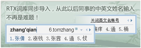 1. RTX詞庫同步導入,從此以后同事的中英文姓名輸入不再是難題;