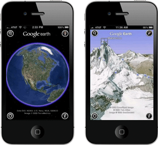 從掌上飛往遙遠的世界。目前可在下列移動設備上使用 Google 地球:Nexus One、Droid、iPhone、iPod Touch 和 iPad。