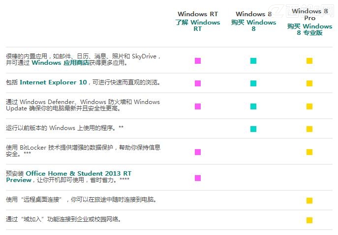 這其中Windows RT版本并不單獨零售,僅預裝在采用ARM處理器的PC或平板設備當中,而Windows 8企業版主要銷售對象為各類企業及用戶,其中捆綁了大量企業級應用,所以對于普通消費者來說在購買或升級Windows 8操作系統時,Windows 8標準版和Windows 8專業版就成了他們的最好選擇。那么在Windows 8標準版和Windows 8專業版之間究竟有什么區別呢?