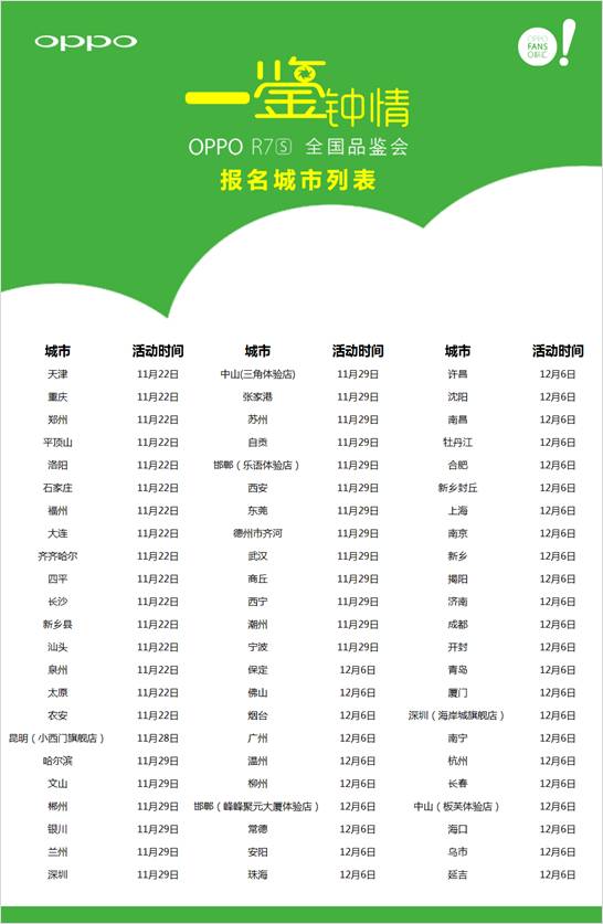 踏著持續上升的熱度,第二、第三波R7s品鑒會將陸續于11月29日和12月6日分別在深圳、廣州、上海、廈門等60多個城市及地區接力開展。報名通道將于城市活動前兩天關閉,名額有限,快來跟小編報名參加下一波活動啦!