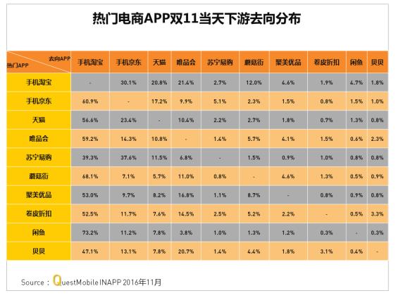 四、熱門電商APP2016年雙11當天上游來源及下游去向