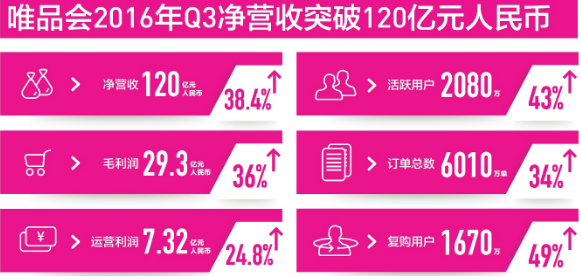 唯品會(huì)首席財(cái)務(wù)官楊東皓進(jìn)一步表示:“在2016年第三季度,唯品會(huì)在凈營(yíng)收、活躍用戶數(shù)和總訂單量方面繼續(xù)保持強(qiáng)勁的增長(zhǎng)態(tài)勢(shì)。重要的是,唯品會(huì)能夠在保持利潤(rùn)率穩(wěn)定的同時(shí),實(shí)現(xiàn)穩(wěn)健的營(yíng)收增長(zhǎng)并擴(kuò)大市場(chǎng)份額。此外,唯品會(huì)也將繼續(xù)拓展互聯(lián)網(wǎng)金融業(yè)務(wù),其不僅越來(lái)越有利于唯品會(huì)核心零售業(yè)務(wù)的發(fā)展,還將進(jìn)一步完善整個(gè)唯品會(huì)的業(yè)務(wù)生態(tài)。通過(guò)平衡營(yíng)業(yè)額和利潤(rùn)率,我們的目標(biāo)是繼續(xù)擴(kuò)大用戶群,并從中國(guó)高度分散的特賣零售市場(chǎng)上獲得更多份額。”