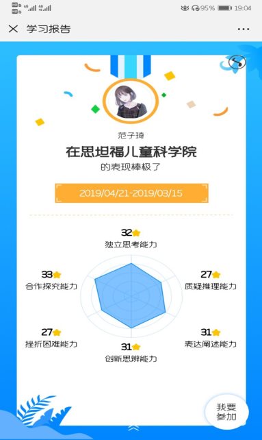 如何讓家長看得見孩子的課堂表現(xiàn)呢?鯨相冊通過獨(dú)特的點(diǎn)評(píng)模型記錄孩子的課程時(shí)光,比如思坦福兒童科學(xué)院的老師可以從獨(dú)立思考能力、合作探究能力、表達(dá)闡述能力、質(zhì)疑推理能力、挫折困難能力以及創(chuàng)新思辨能力6個(gè)維度點(diǎn)評(píng)學(xué)員的課堂表現(xiàn),讓家長全面、直觀了解孩子,也增加了家長對(duì)思坦福兒童科學(xué)院的信任。