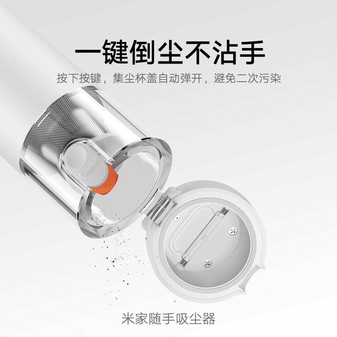 在保證高效清潔的同時,米家隨手吸塵器設計團隊對產品細節設計進行全面優化,進一步優化用戶體驗。米家隨手吸塵器采用方便的一鍵倒塵設計,用戶完成清潔工作后,把塵杯向下單手按下按鍵,塵杯蓋即自動彈開,讓內部灰塵雜物自動傾瀉而出,方便不沾手,避免二次污染,滿足用戶對健康的高要求。塵杯蓋采用按鍵鎖扣設計,避免使用時不慎誤觸導致灰塵溢出。