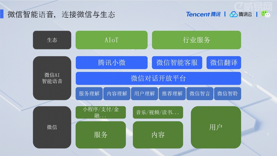 騰訊小微是一套微信AI團(tuán)隊(duì)開(kāi)發(fā)的智能服務(wù)系統(tǒng),也是一個(gè)智能服務(wù)開(kāi)放平臺(tái)。借助微信智聆和微信智言在語(yǔ)音識(shí)別和自然理解等領(lǐng)域領(lǐng)先的研究成果,接入騰訊小微的系統(tǒng)和硬件可以快速具備聽(tīng)覺(jué)感知能力和智能對(duì)話(huà)能力,從而幫助硬件廠商實(shí)現(xiàn)更智慧的人機(jī)交互。作為微信對(duì)話(huà)開(kāi)放平臺(tái)與AIoT生態(tài)相結(jié)合的產(chǎn)品,“騰訊小微”本身的產(chǎn)品路徑與形態(tài),使它成為了連接微信生態(tài)內(nèi)的大量服務(wù)內(nèi)容與外界生態(tài)之間“最堅(jiān)固的橋梁”。