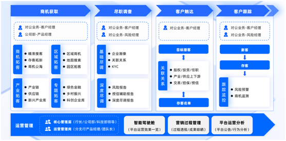 針對這些問題,合合信息旗下啟信寶推出了銀行對公數字化方案,幫助銀行突破數據應用、風險管理、客戶拓展等多場景堵點,創新性將商機獲取、盡職調查、客戶觸達、運營管理等流程融為一體;打造“啟信寶商機事件庫”,針對各地產業政策、重點產業、產業園區等現狀與資源稟賦,差異化打造數字化營銷平臺。