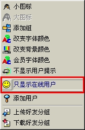 大家都知道在QQ里查找好有翻下去好長,想要回到最上面的位置,可以點擊別的組,就可以回到我的好友的最上面了。但這個方法在顯IP版本QQ中管用,后來發現有很簡單的一個辦法可以快速回到我的好友最上邊,方法依此是先在我的好友里單擊鼠標右鍵,在菜單中選擇“只顯示在線用戶”(圖6),