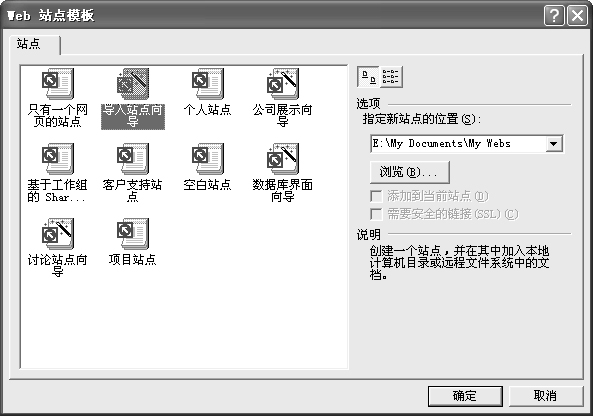 現在的離線瀏覽器很多,可是多數都是共享軟件,或是英文軟件,這給我們的操作帶來了很大的不便。其實微軟的網頁制作工具FrontPage XP有一個網站下載功能,通過一些設置就可以拖下整個站點文件,讓你在離線后慢慢品味網站。 首先啟動FrontPage XP,依次點擊“文件”菜單中的“新建→網頁或站點”命令,隨后在程序的右側彈出一個“新建網頁或站點”任務欄,單擊其中的“Web站點模板”命令,打開“Web站點模板”對話框(圖1),選中其中的“導入站點向導”模板,在右側的“指定新站點位置”輸入欲導入站點的目標文件夾。單擊“確定”按鈕打開一個“站點導入向導-選擇源”對話框。