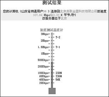 網上有不少提供網速測試的站點,推薦大家進入http://www.linkwan.com,選擇你要連接的服務器,很快就會得到測試結果(如圖2,測試結果及該結果與標準帶寬的比較一目了然)。此外你還可以進入本站提供的http://m.wsalc.com/testspeed.asp 查看你位于本站服務器的連接情況 或者到 http://www.linkwan.com/gb/broadmeter/speed/dslreports.htm,查看你與位于美國的測試網站的連接情況。