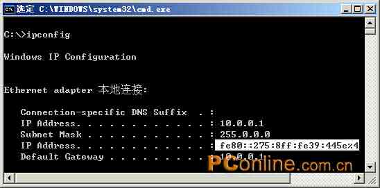 1. 和IPv4類似,可以使用IPCONFIG命令察看IPv6的配置信息