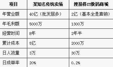 IT數(shù)碼商城在2002財年的相關(guān)數(shù)據(jù)做了一個簡單對比,發(fā)現(xiàn)網(wǎng)絡(luò)電子商城的成長勢頭確實(shí)不容忽視,具體見如下表格: