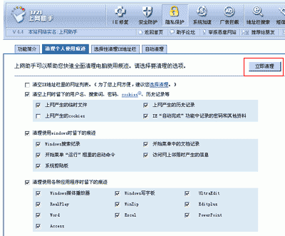 (2) 選擇“清理上網(wǎng)痕跡”項,出現(xiàn)圖4: