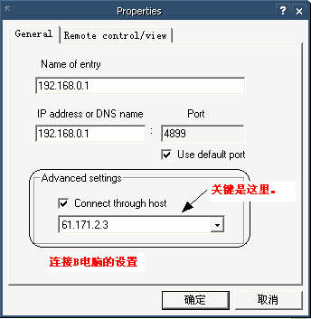 5.在C電腦上面,運行:Remote Administrator Viewer,然后雙擊:192.168.0.1去連接。這個時候,程序會彈出一個輸入密碼的窗口,輸入:0123456789(就是前面我們設置的訪問A電腦的密碼);確認之后,程序還會彈出一個輸入密碼的窗口,輸入:9876543210(就是前面我們設置的訪問B電腦的密碼)。兩次密碼都輸入正確后,就可以控制B電腦了。
