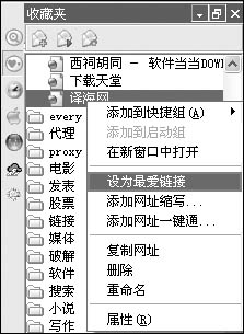 上網(wǎng)久了,收藏夾中的記錄變得越來越長,有時候由于來不及整理,收藏記錄就變得既零亂又龐雜,常常為了打開其中某個網(wǎng)頁的鏈接而在收藏夾中尋尋覓覓,甚至還要不斷翻閱當(dāng)中的文件夾才能找到,既麻煩又費(fèi)時。MyIE2的收藏夾功能中有一個叫做“最愛鏈接”的功能,使用者把有關(guān)的網(wǎng)址設(shè)為最愛鏈接后,該鏈接名稱便會用醒目的紅色表示出來。如此一來,使用者就可以在收藏夾里快速尋找到這些重要鏈接了,而且通過“打開本層最愛鏈接” 能夠一次性打開某層收藏夾目錄里的所有最愛鏈接,使用起來非常方便,有關(guān)設(shè)置如下:打開菜單“收藏夾→組織收藏夾”命令(或直接點(diǎn)擊工具欄上的收藏夾圖標(biāo)),用鼠標(biāo)右擊某個鏈接,在彈出的菜單中選擇“設(shè)為最愛鏈接”(如圖1),此時在鏈接的名稱前面會出現(xiàn)一朵小紅花,在收藏夾菜單下該鏈接的名稱則全部變?yōu)榧t色,相當(dāng)醒目。要取消最愛鏈接,可以再次右擊鏈接,然后選擇“取消最愛鏈接”即可。