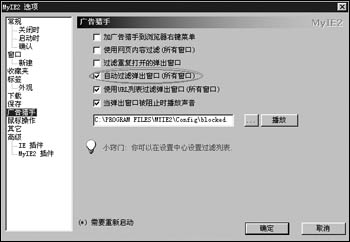 為了對付彈出式窗口廣告,MyIE2提供了兩種解決方案——自動過濾與自定義過濾。