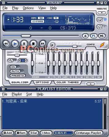 winamp不愧為一個老牌的音樂播放程序,華麗的skin和豐富多彩的plugin使它一直在音樂播放領域立于不敗之地,特別是DFX等音頻增強插件的應用使winamp的音質有了質的飛躍。雖然華麗的界面消耗了更多的系統資源,但是誰會為了那么幾MB的內存使用而放棄了一個優秀軟件的使用呢?