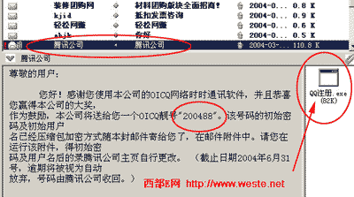 您好!感謝您使用本公司的OICQ網絡時時通訊軟件并且恭喜您贏得本公司第#季度的大獎,作為鼓勵,本公司將送給您一個OICQ靚號“20082008”該好碼的初始密碼及初始用戶名已經以文本附件方式隨本封郵件寄給您了。請您在得初始密碼及用戶名后的錄騰訊公司主頁自行更改。