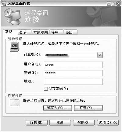 到辦公室的第一件事就是打開電腦,先打開QQ,并以他三個QQ號中的一個登錄。隨即單擊“開始→程序→附件→通訊→遠程桌面連接”打開如圖2所示的窗口。