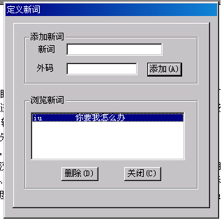 要強制輸入詞條,就要事先定義詞條。定義詞條的方法是選菜單"定義新詞"項,出現如圖1所示的定義新詞對話框。圖1。