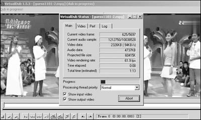 最后選擇“Edit→Begining”開(kāi)始預(yù)覽效果,滿意以后點(diǎn)擊“File→Save as avi”保存文件,程序?qū)?huì)自動(dòng)輸出視頻文件并添加濾鏡效果(圖4)。