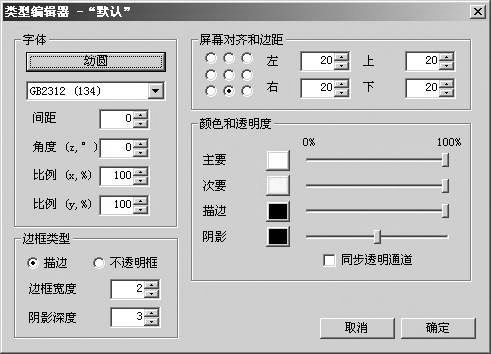對于文本字幕出現(xiàn)的亂碼,用VobSub簡單設置一下就可以消除,另外我們還可以用它設置字幕的字號、顏色、位置等。雙擊系統(tǒng)托盤區(qū)中的VobSub圖標,在屬性對話框中選擇“主窗口”選項卡,單擊“文本設置”欄中的字體按鈕,即可彈出“類型編輯器”對話框(如圖),選擇字體欄中的按鈕即可設置字幕的字體、字號,在字體下面的下拉列表中可設置字幕所使用的字符集,簡體可使用GB2312或GBK,繁體使用BIG5。通常字幕顯示為亂碼時是字符集設置不對造成的,可在這里修改。
