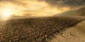 S : Massive最重要的一點在于它是智能的,你可以賦予替身(Agency)智能,讓他們在遇到敵人的時候才開打,遇到石頭的時候就繞開,遇到懸崖會停住,別往下跳;而且這些數字角色是有感情的,他們在不同的情況下會哭、笑、憤怒……一個比較好的例子就是,第一部里面,甘道夫們在遇到炎魔之前,他們一直在地下宮殿的地道里奔逃,他們頭上的巖柱不斷的掉下來,他們必須非常驚險的避過那些掉下來的巖石,那個場景就是完全在Massive里完成的,甘道夫和其他的護戒使者也全部都是用的數字角色。這個如果用實拍加動畫合成的話,至少需要好幾天的時間,但是用Massive只需要一分鐘的時間就搞定。而且Massive還能夠賦予這些數字角色情感,他們會根據不同的情況產生憤怒、開心等種種不同的情緒。