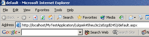 其中,http://localhost/MyTestApplication/(ulqsek45heu3ic2a5zgdl245)/default.aspx中黑體標(biāo)出的就是客戶端的Session ID。注意,這段信息是由IIS自動(dòng)加上的,不會(huì)影響以前正常的連接。