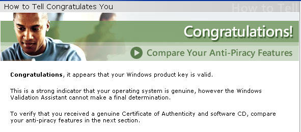 下面的是微軟的測試你的版本是否通過驗證的鏈接: