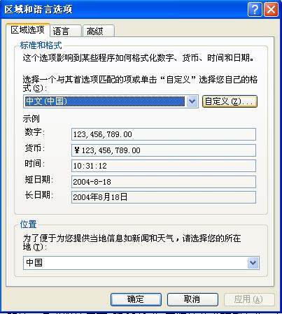 在Windows XP中,區域和語言選項是一個非常重要的組件,它增強了Windows系統在多種語言環境中的應用能力。在第一個選項卡“區域選項”中,我們能夠看到“標準和格式”,下面的下拉菜單中有不同國家和地區的語言。選擇不同地區的語言就會改變日期、貨幣、數字和時間的顯示方式。