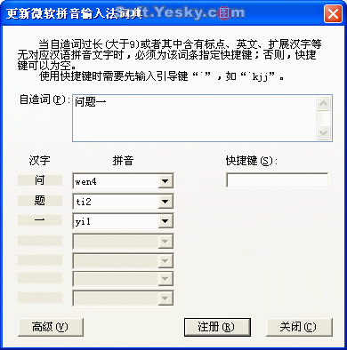 Word有一項非常有用的功能就是可以自動檢查輸入的內容是否含有語法錯誤,這是由默認安裝的微軟輸入法的詞庫支持的。在寫作過程中經常會遇到Word自動檢測出一些詞庫中沒有的特殊語法,如何讓這些特殊用法可永久性被微軟輸入法識別呢?方法就是把這個特殊語法加到輸入法的詞庫中:在被識別的錯誤語法上點右鍵,選“語法”,然后選擇“詞典”,在出現的“更新微軟拼音輸入法”對話框的 “自造詞”一欄里填上特殊用法的詞,最后點“注冊”即可。如圖2。